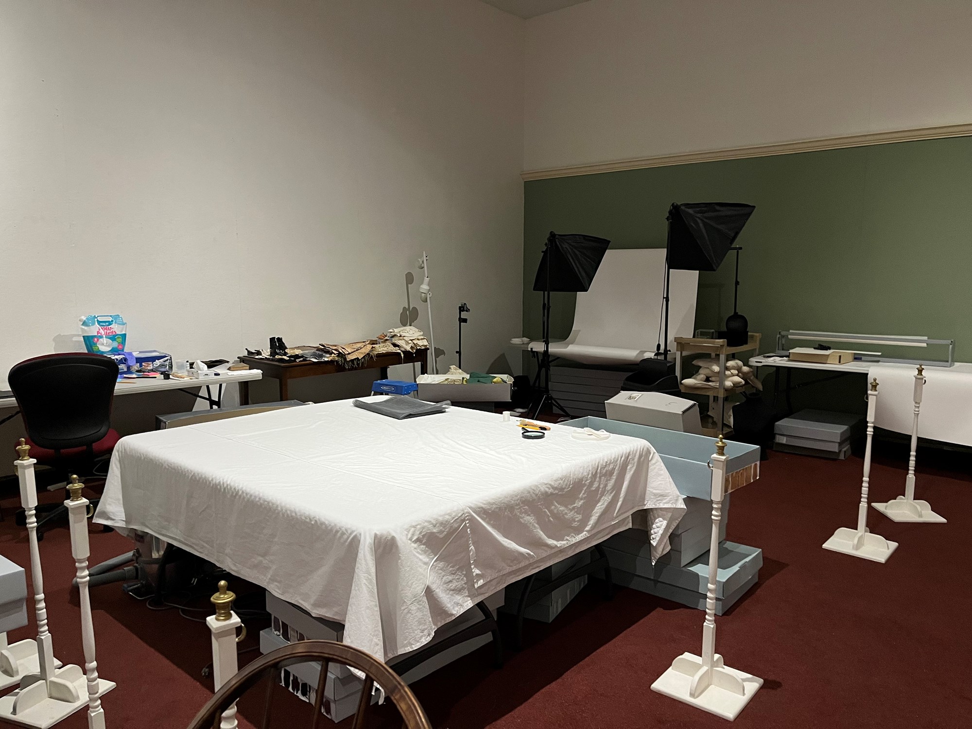 A highlight for visitors was the opportunity to see staff at work in the gallery, reviewing, accessioning, cataloging, researching, cleaning, and storing (packing and boxing) various artifacts on large tables at one end of the gallery. We welcomed staff and volunteers from as far away as Texas, Arlington