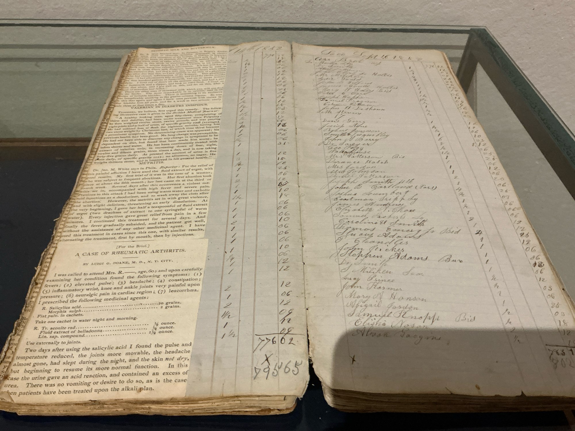 This information became even more interesting after an email arrived from Arizona asking if a “ledger” which descended in their family would be appropriate for the museum collection. After a positive response, the ledger soon arrived. While part of the ledger was eventually used as a scrapbook, many of the original pages were still visible and documented the efforts of one John A. Berry. In The Town Liquor Book, 1852-1853, Berry, the agent for Saco, enumerated his dispersals of liquor in Saco during this