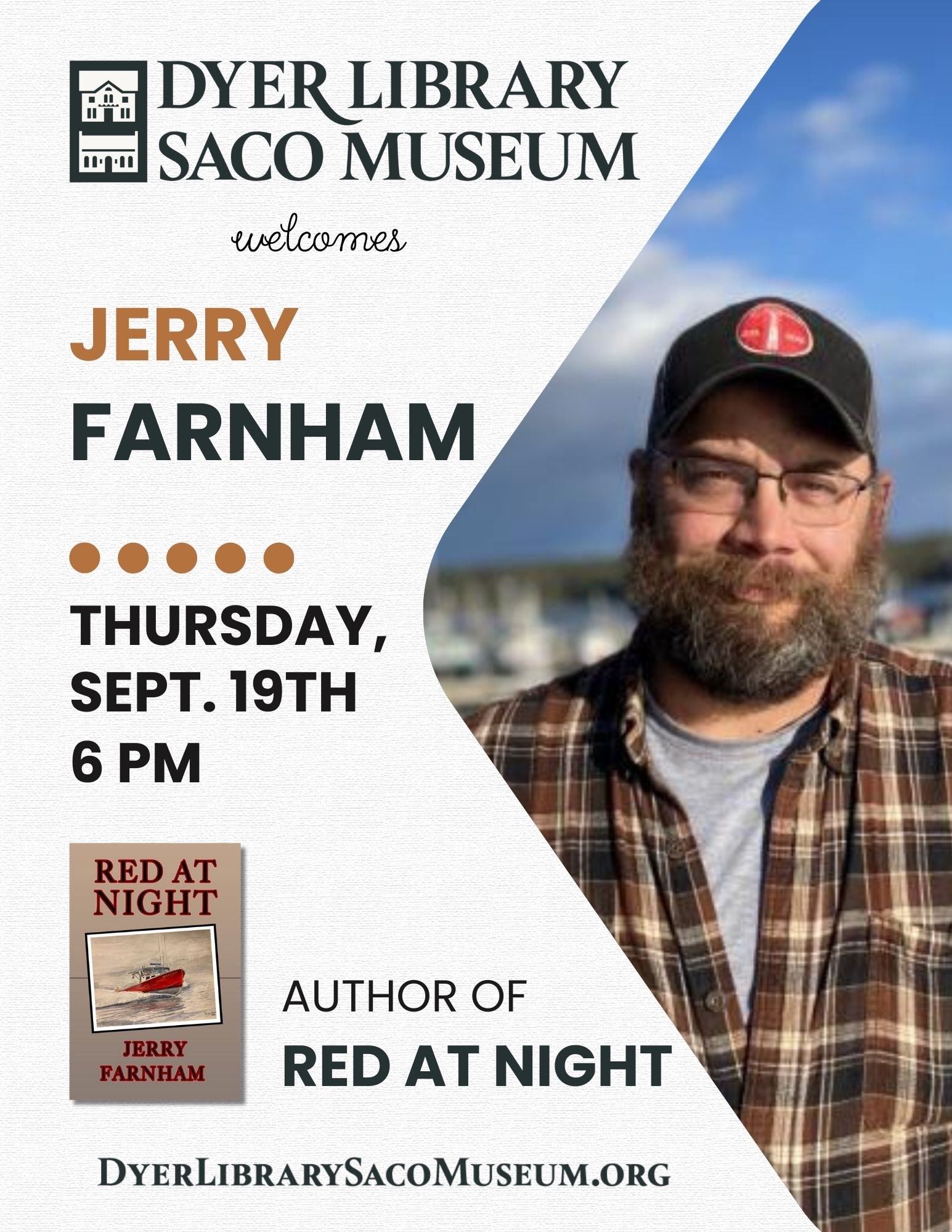 Join us on Thursday, September 19th for a conversation with Maine author Jerry Farnham, who will be discussing his book Red at Night. A diverse love story wrapped in mystery and suspence, his novel features a lobsterman haunted by guilt who meets a Hollywood starlet running from the ominous media of tinsel town.