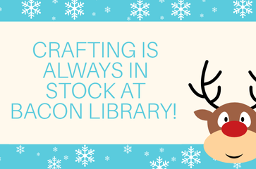 Craft Bags To Go: High School & Adults Saturday, December 13 and 20 Craft Bags will be available starting Monday behind the front desk. Whatever is left on Wednesdays, will be available in the Makerspace!