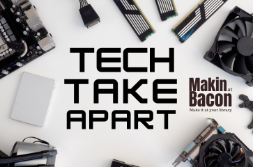 Tech Take Apart Tuesday, December 9, 2025 5:00 PM - 6:00 PM On December 9th, Makin Bacon will be turned into the Breakerspace! The Breakerspace will provide kids and teens with the hands-on opportunity to take apart and see how everyday pieces of technology work. Eye protection, screwdrivers, and containers for scraps will be provided!