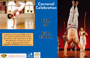 Carnaval CelebrationFebruary 20 from 6:30-7:30PM For the Whole Family. Celebrate Carnaval 2026 with a live capoeira performance! Learn the history and importance of this Afro-Brazilian martial art and enjoy a demonstration from ABADÁ-CAPOEIRA San Francisco. Plus, you can enjoy (free!) tasty Brazilian treats catered by the Brazil Appetizers food truck!