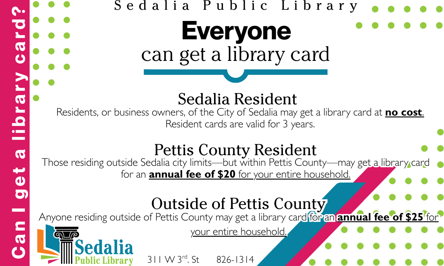 Libraries are for everyone—no matter your age, background, or goals—success starts with your library card. Getting a library card is easy and empowering! Join us this month in exploring all the ways the library and a library card can enhance your life. Encourage someone who doesn’t have a card yet to come in and get signed up; especially a child in your life.