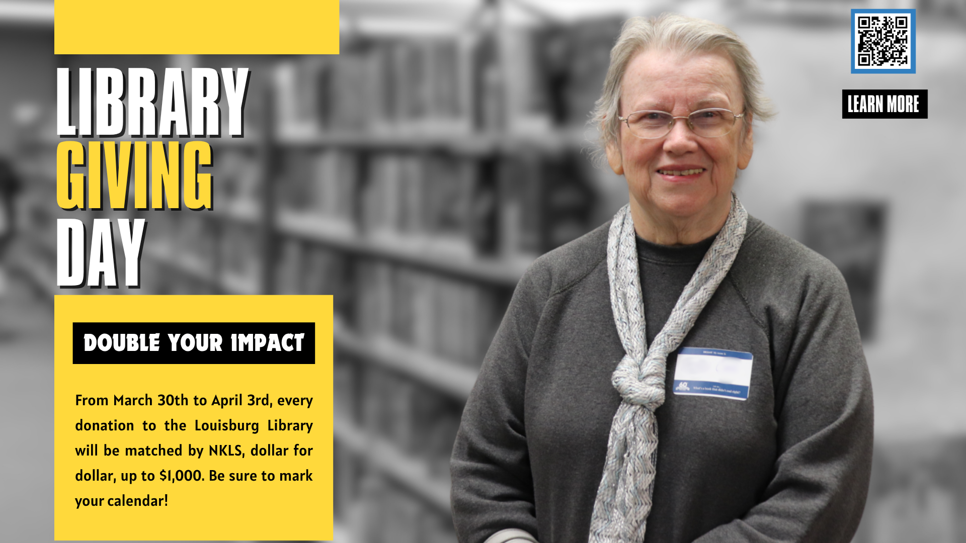 From March 30th to April 3rd, every donation to the Louisburg Library will be matched by NEKLS, dollar for dollar, up to $1,000! |