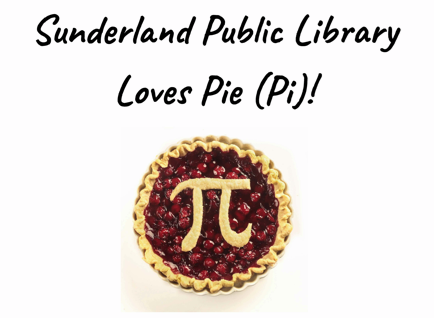 Pi Day Pie Social A Fundraiser for the Friends of Sunderland Public Library Friday, March 13th 4:30 pm - 6:30 pm Join us for a slice of sweet or savory pie made by some of Sunderland's best home and professional bakers. Pie/Pi trivia, jokes, and activities will be available. The Friends of Sunderland Public Library will be selling raffle tickets for pies or gift cards to local pie-making establishments.