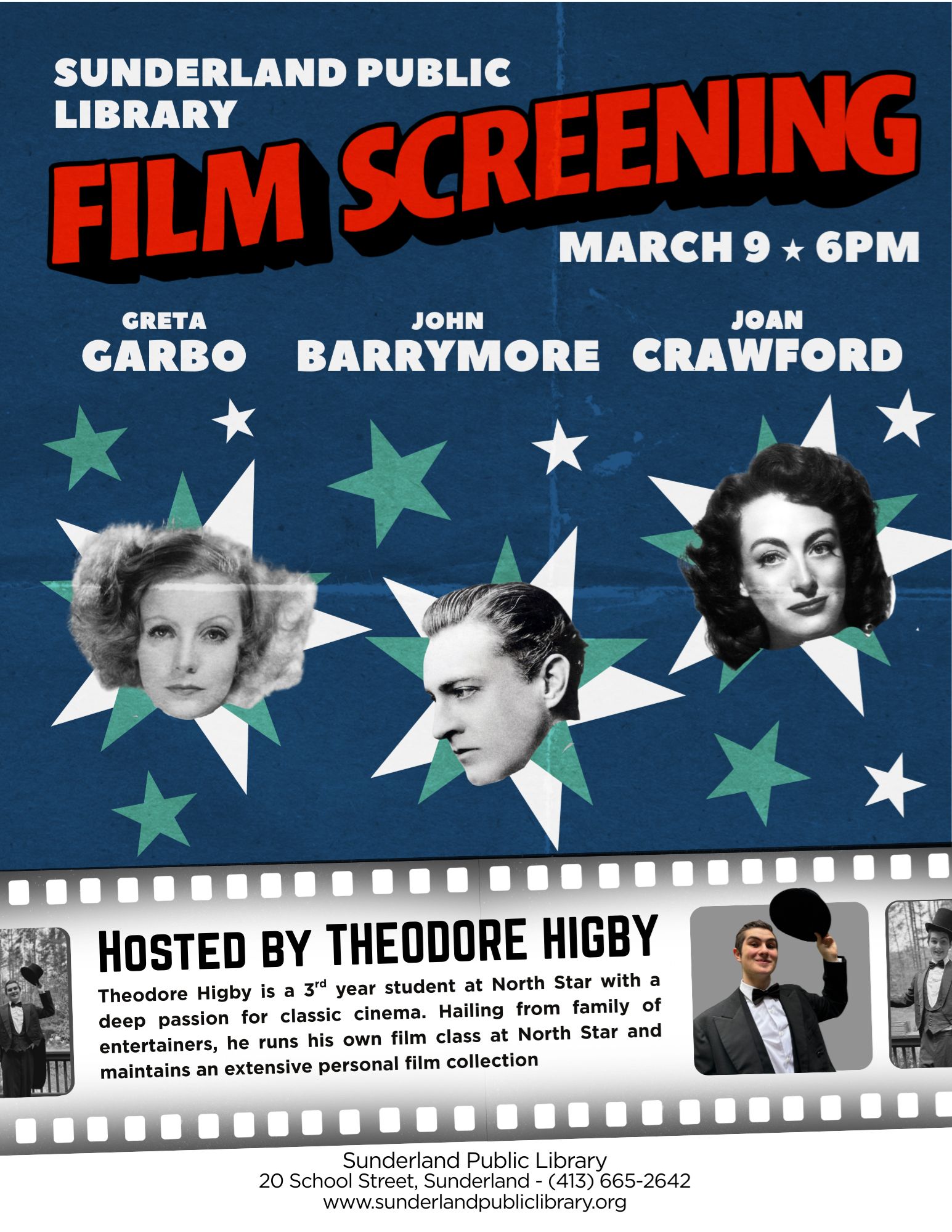 Classic Film Screening Monday, March 9th - 6:00 pm Join us for a classic film on our giant screen. Brief context for the film will be provided by Theodore Higby, a 3rd year student at North Star Center for Self-Directed Learning with a deep passion for classic cinema. Visit or contact the library to learn which film we are showing.