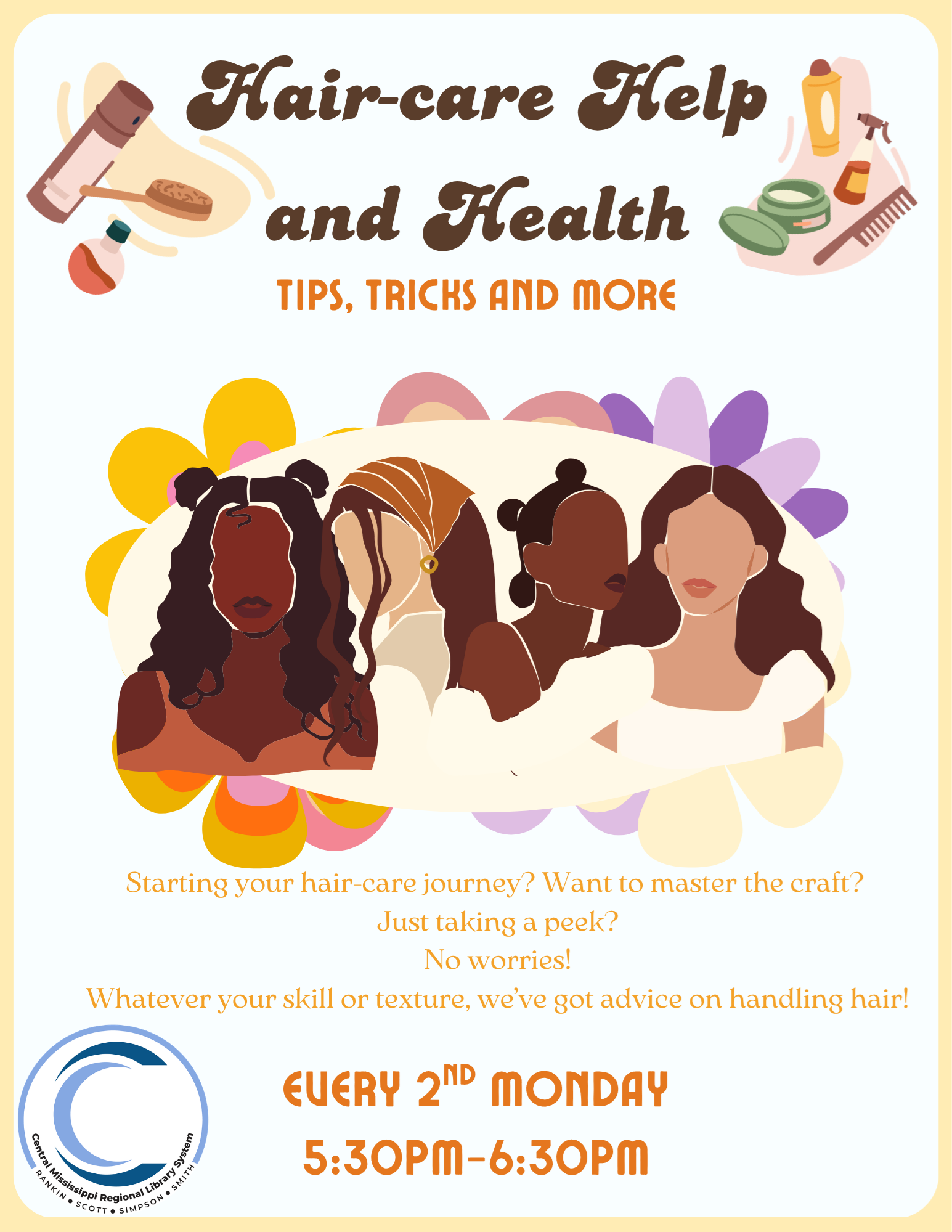Haircare Health and Help Starting your hair-care journey? Want to master the craft? Just taking a peek? No worries! Whatever your skill or texture, we’ve got advice on handling hair! Our first meeting will be April 13 at 5:30 p.m.