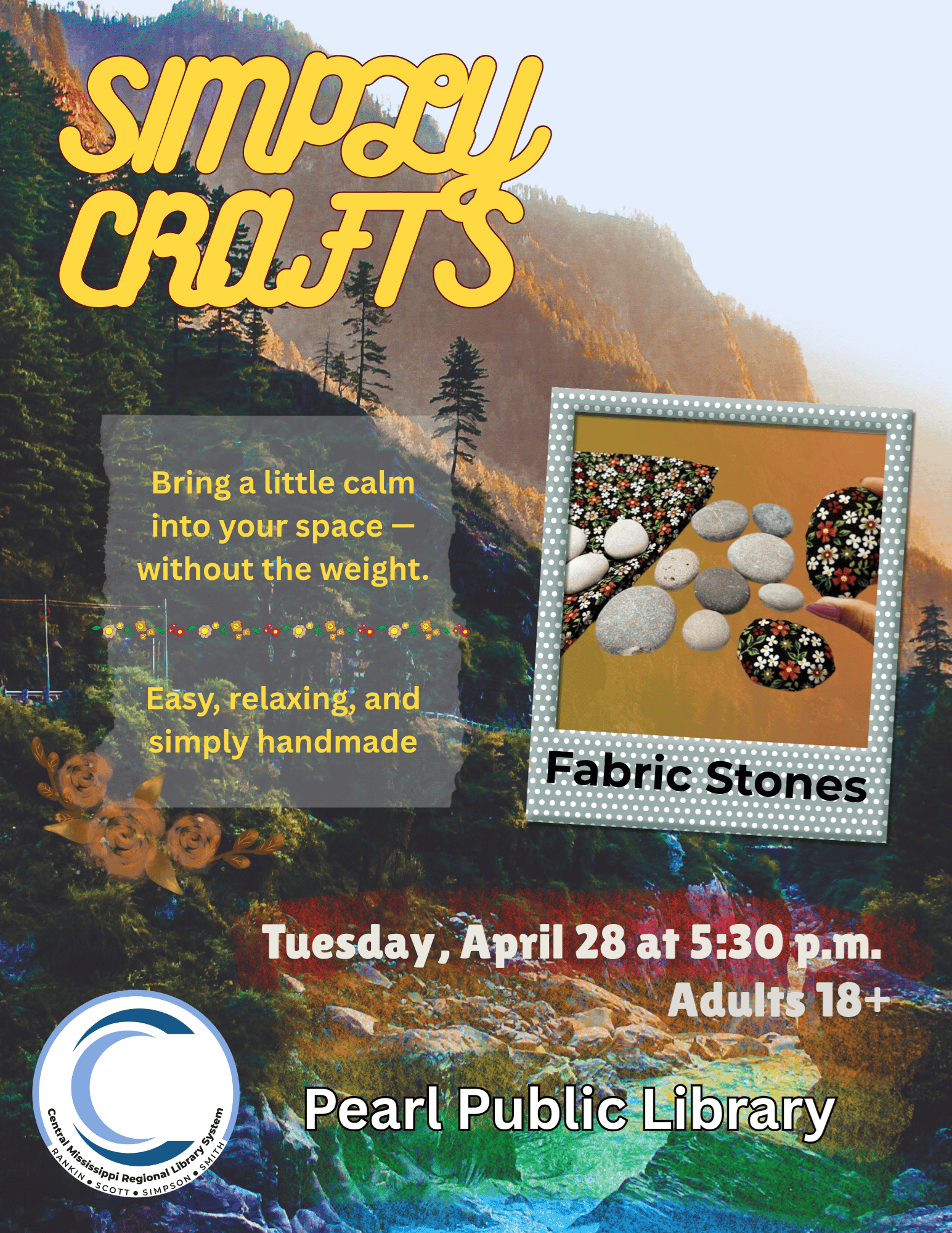 Simply Crafts Join us for Simply Crafts! We will be decorating stones with fabric and other embellishments. Adults only, free, with all supplies provided.