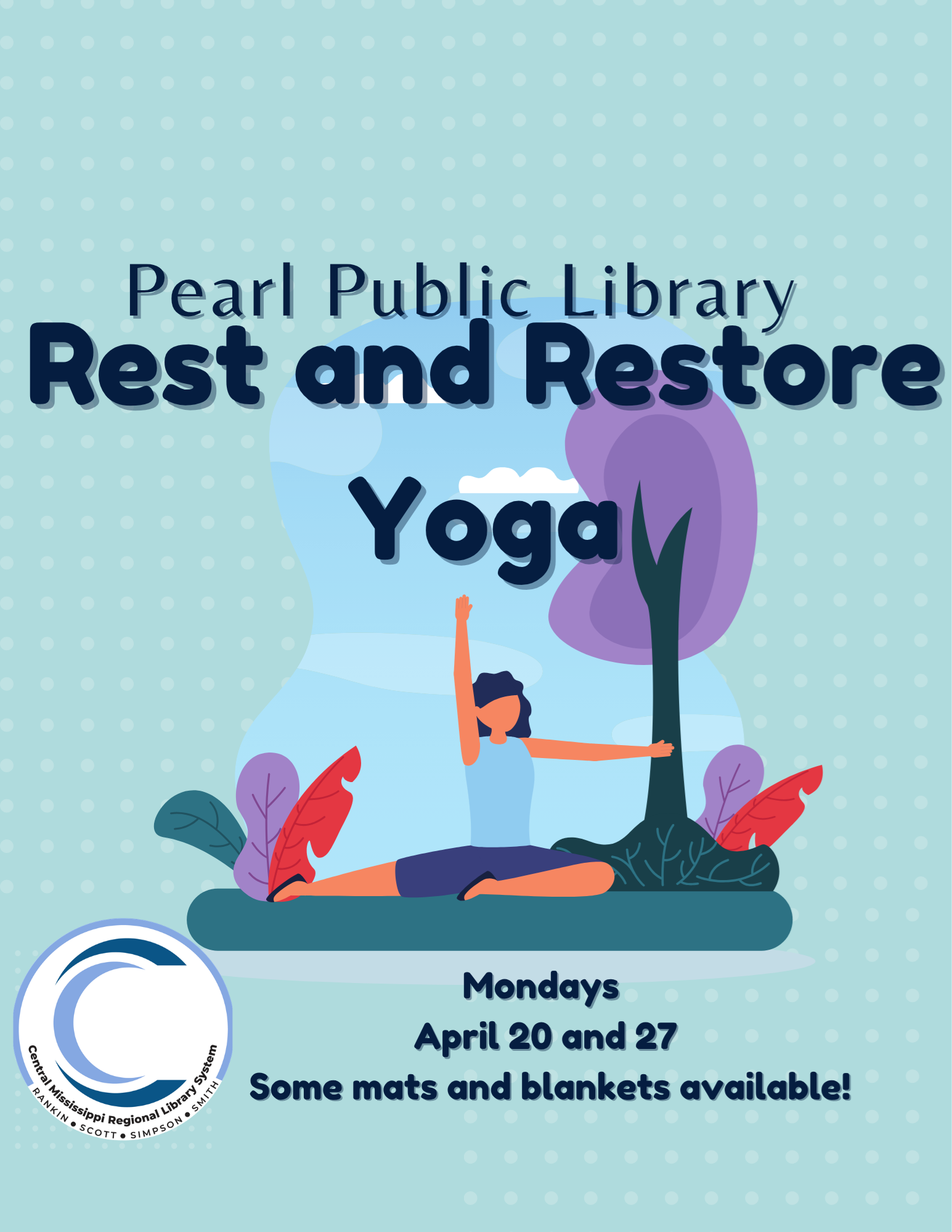Rest & Restore Yoga Join us for a free, all-levels yoga class at the Pearl Public Library! Whether you're a beginner or an experienced yogi, this session is designed to help you stretch, breathe, and unwind in a supportive environment. No registration required! Wear comfortable clothes, and water bottles are recommended!