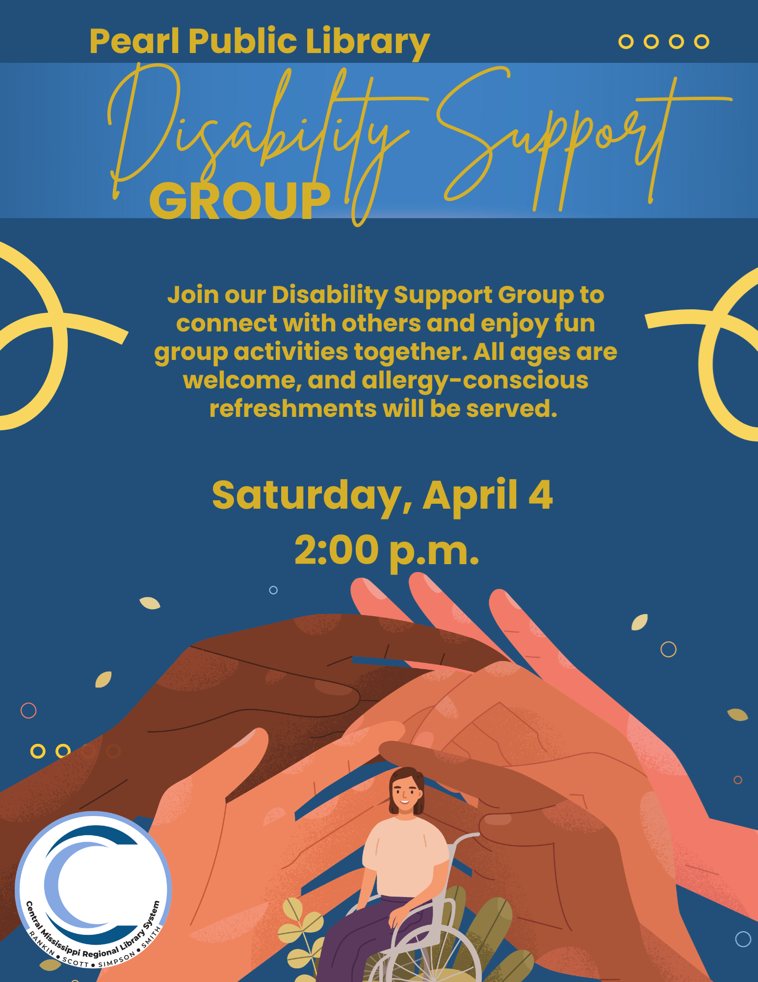 Disability Support Group Join our Disability Support Group to connect with others and enjoy fun group activities together. All ages are welcome, and allergy-conscious refreshments will be served.