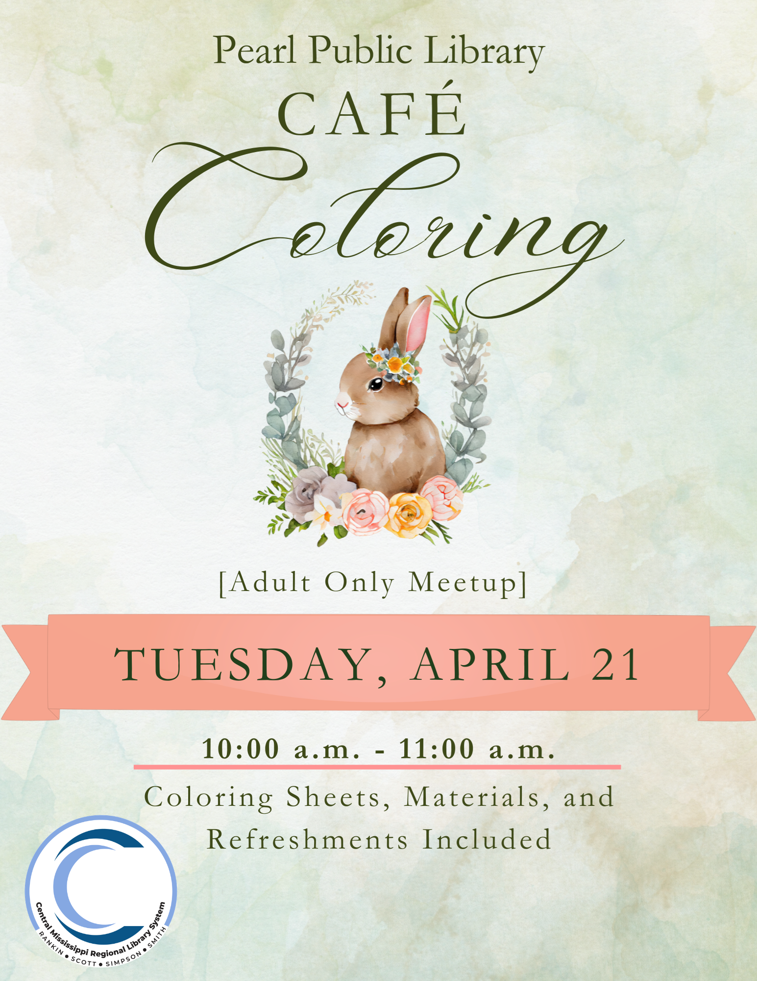 Cafe ColoringJoin us for a relaxing social hour including coloring sheets, drawing materials, and refreshments! All supplies included, this is an adult-only meetup!