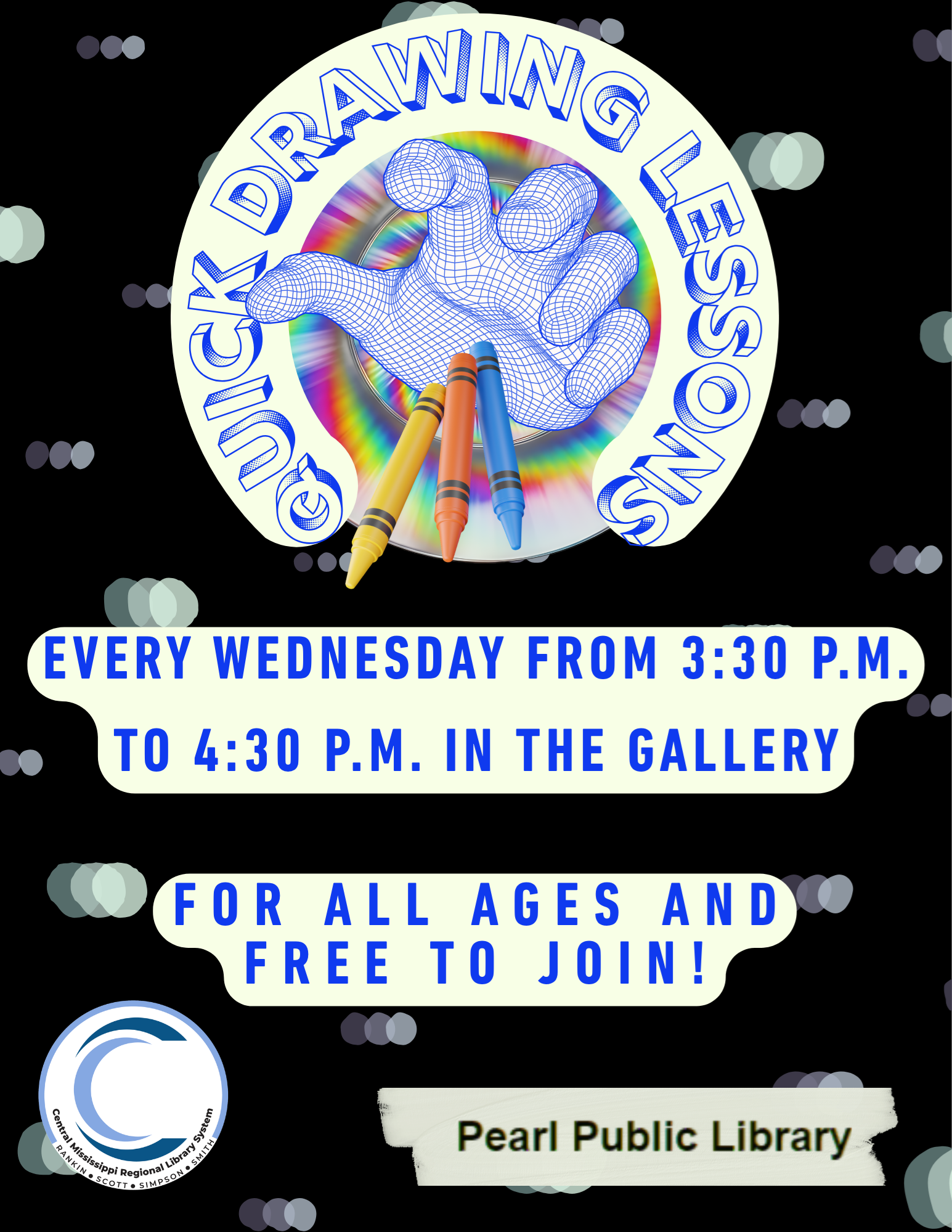 Quick Drawing Lessons Want to boost your creativity or learn to draw, but don’t know where to start? Join us for quick, beginner-friendly drawing lessons at the library! Each session focuses on simple techniques and fun prompts to help you build confidence and sharpen your skills—no experience needed.