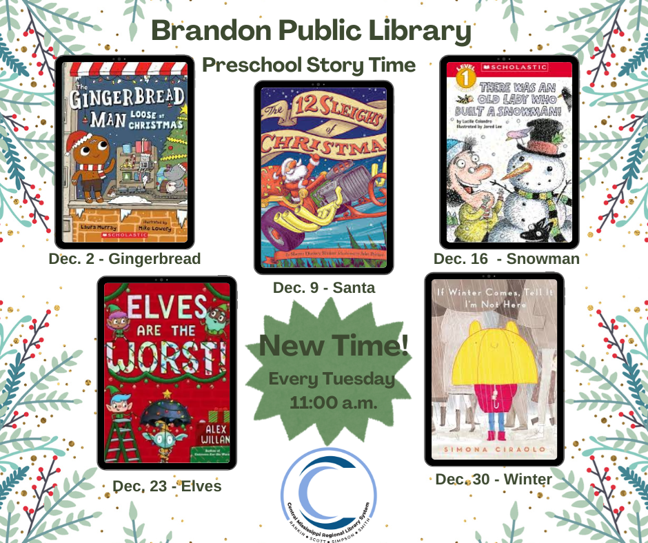 Preschool Story Time and Lapsit Story Time are moving days & times beginning the first week of December.