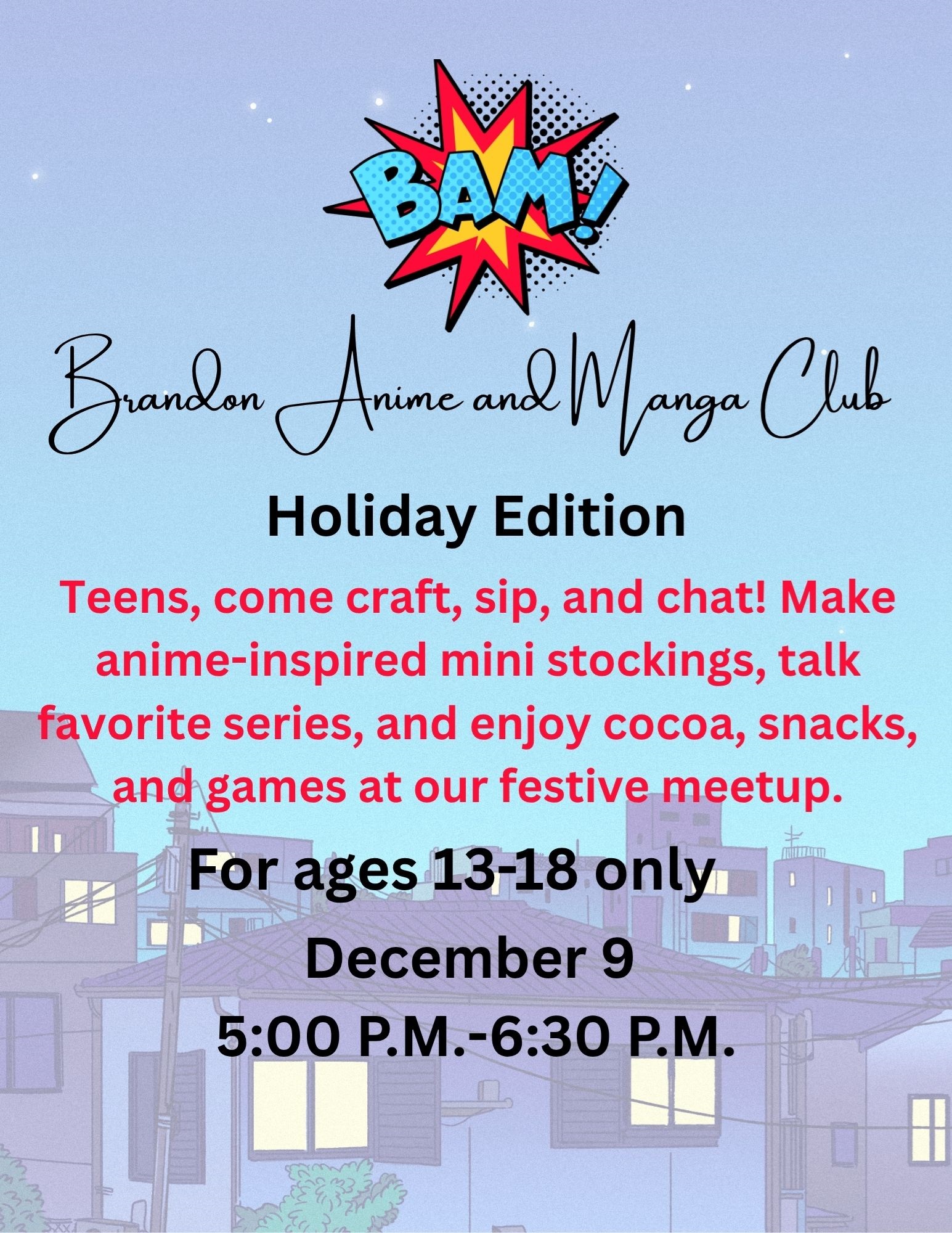Kid Connection will meet only once a month beginning in December. Make sure to check out all of our other programs! Homeschool Hangout is Back at Brandon!
