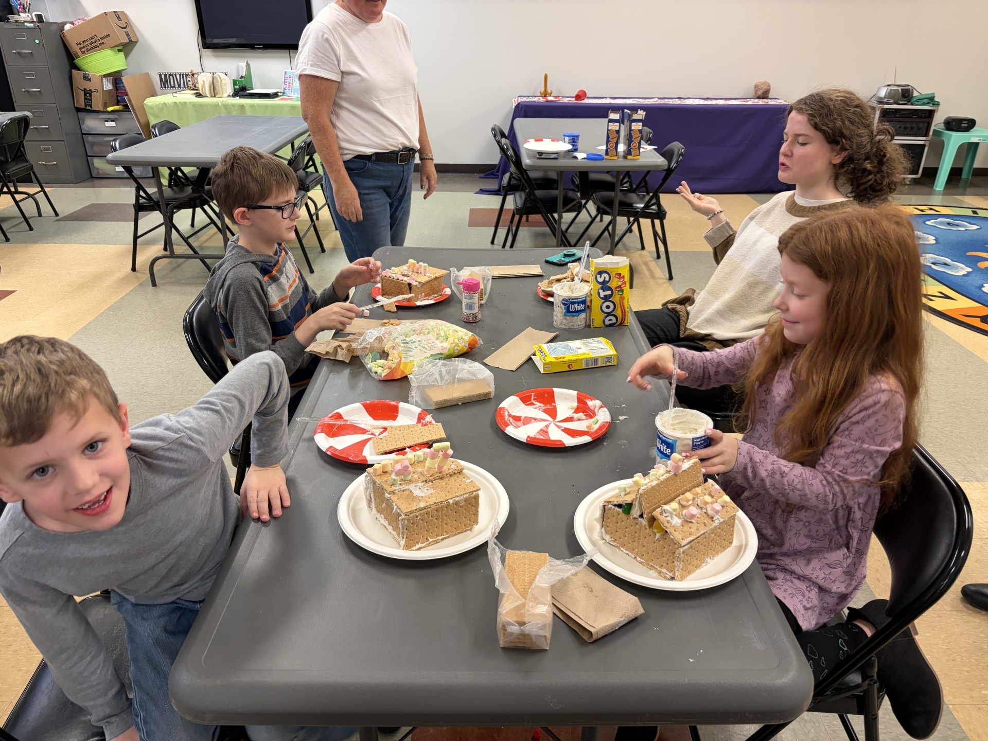 We had lots of fun at our Holiday Pictures event. Families enjoyed snacks and crafts in addition to being able to take fun holiday pictures. Paint Night was a huge success! Thanks to everyone who came out and painted with us. Our homeschool group had fun making graham cracker "gingerbread" houses.