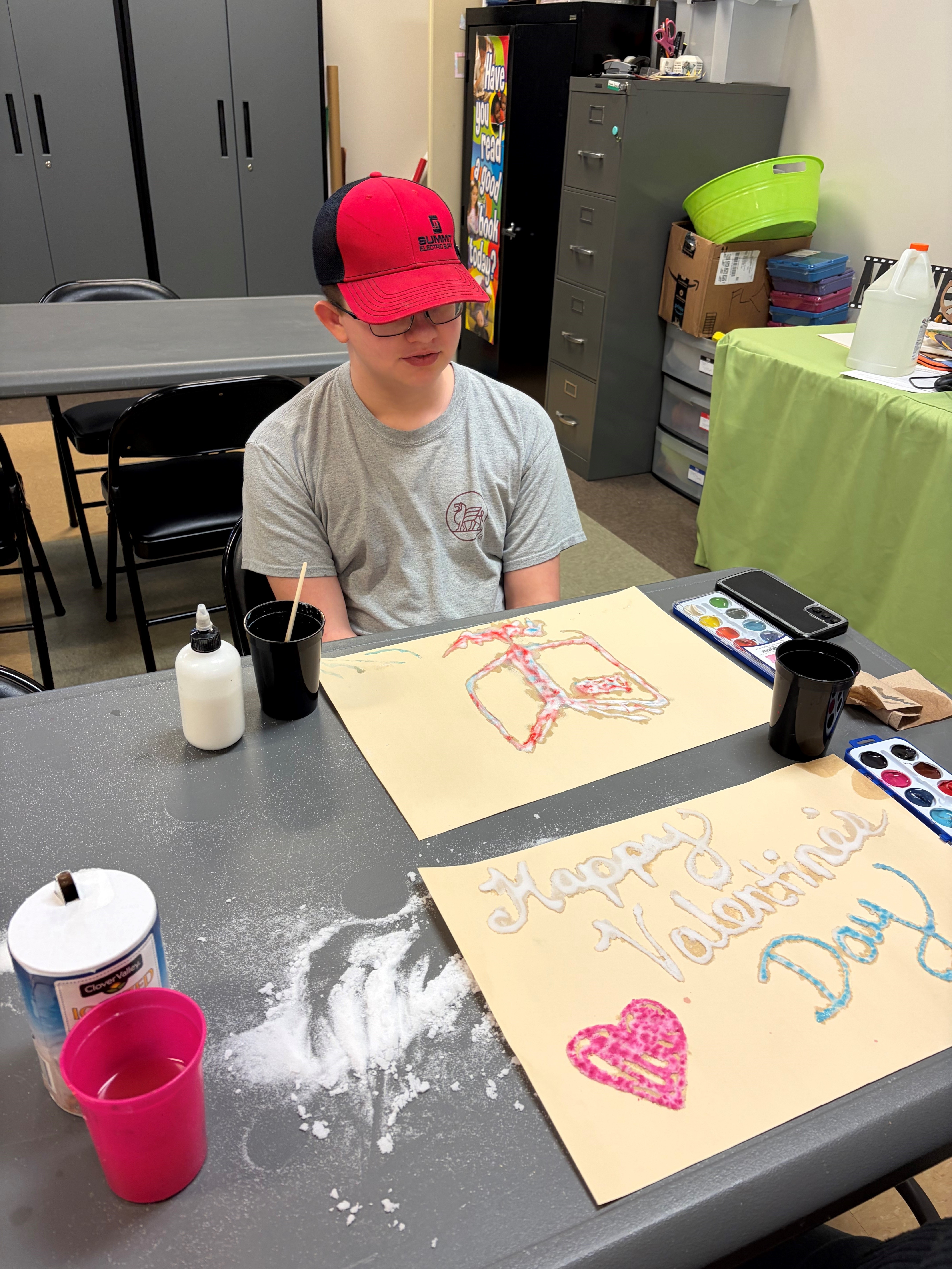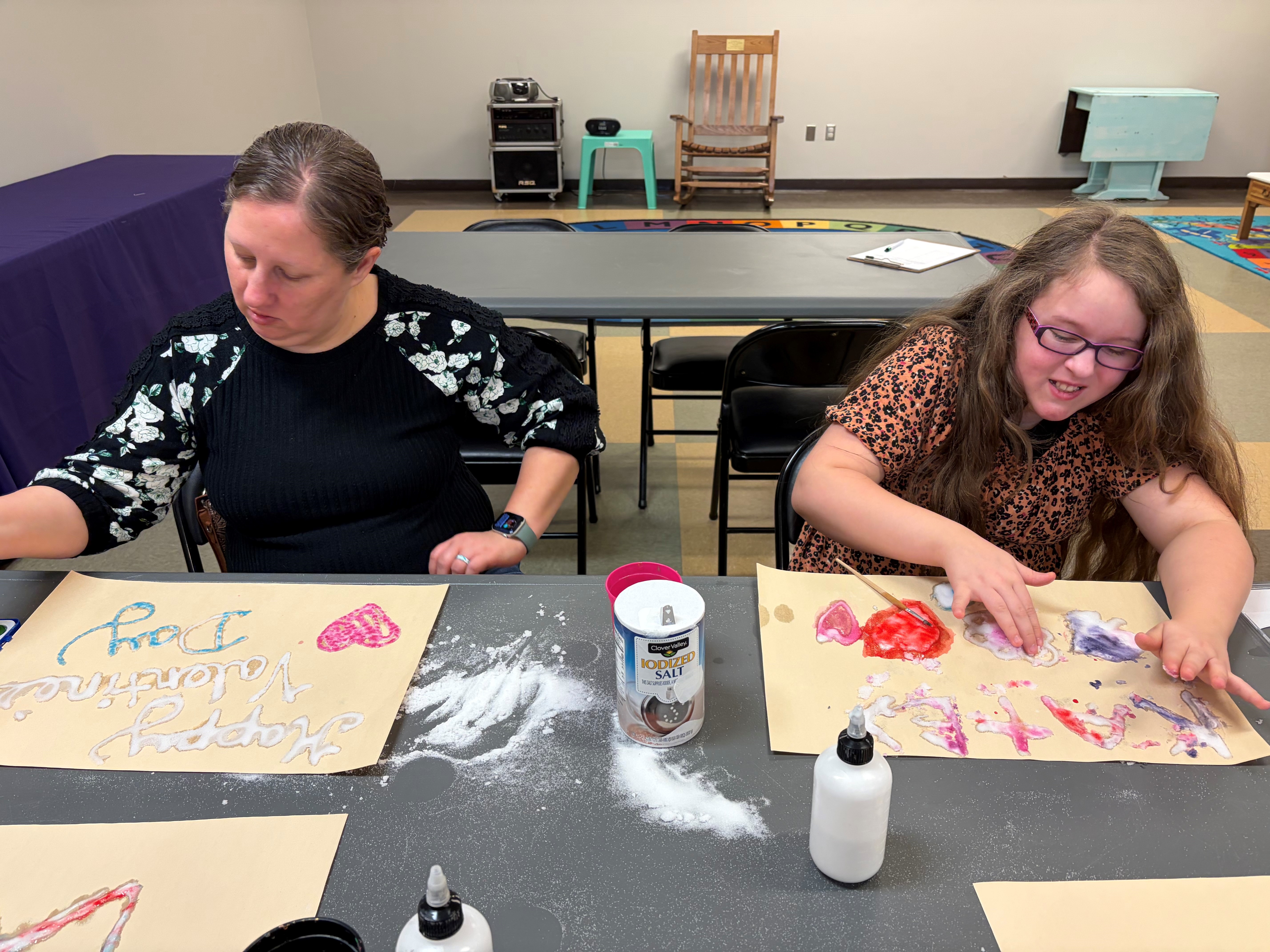 Our homeschoolers had fun creating salt art. Homeschool Hangout Friday, March 13 1:30 p.m. We will be making kaleidoscopes.