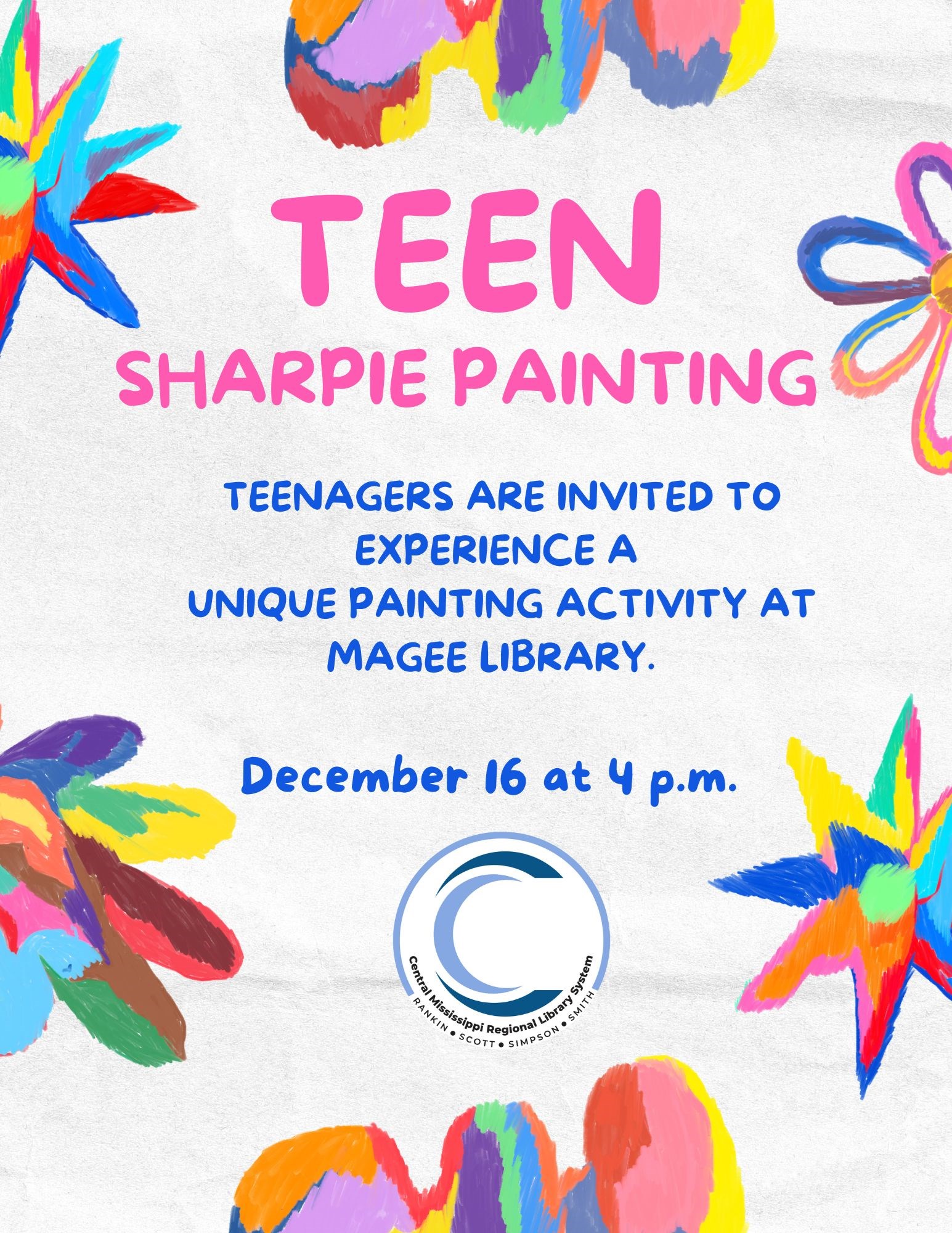 Sharpie Painting Thursday, December 11 at 4 p.m. Come and have fun with markers in creating art! Homeschool Hangout Tuesday, December 16 at 10 a.m. Have fun in a STEAM activity and a Christmas Movie. Movie Day Thursday, December 18 at 3:30 p.m. Have a good time watching "Rudolph, the Red-Nosed Reindeer." Rating: G; Production: Universal Studios.; Duration: 47 minutes. Free Popcorn.