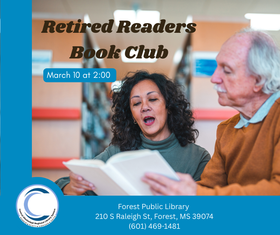 Retired Readers Book Club: For March, we will be reading a book with an Irish setting. This can be a mystery, a historical fiction, a romance book, or whatever other Irish-themed book you can find. The meeting will be on March 10 at 2:00 p.m. in the small meeting room.