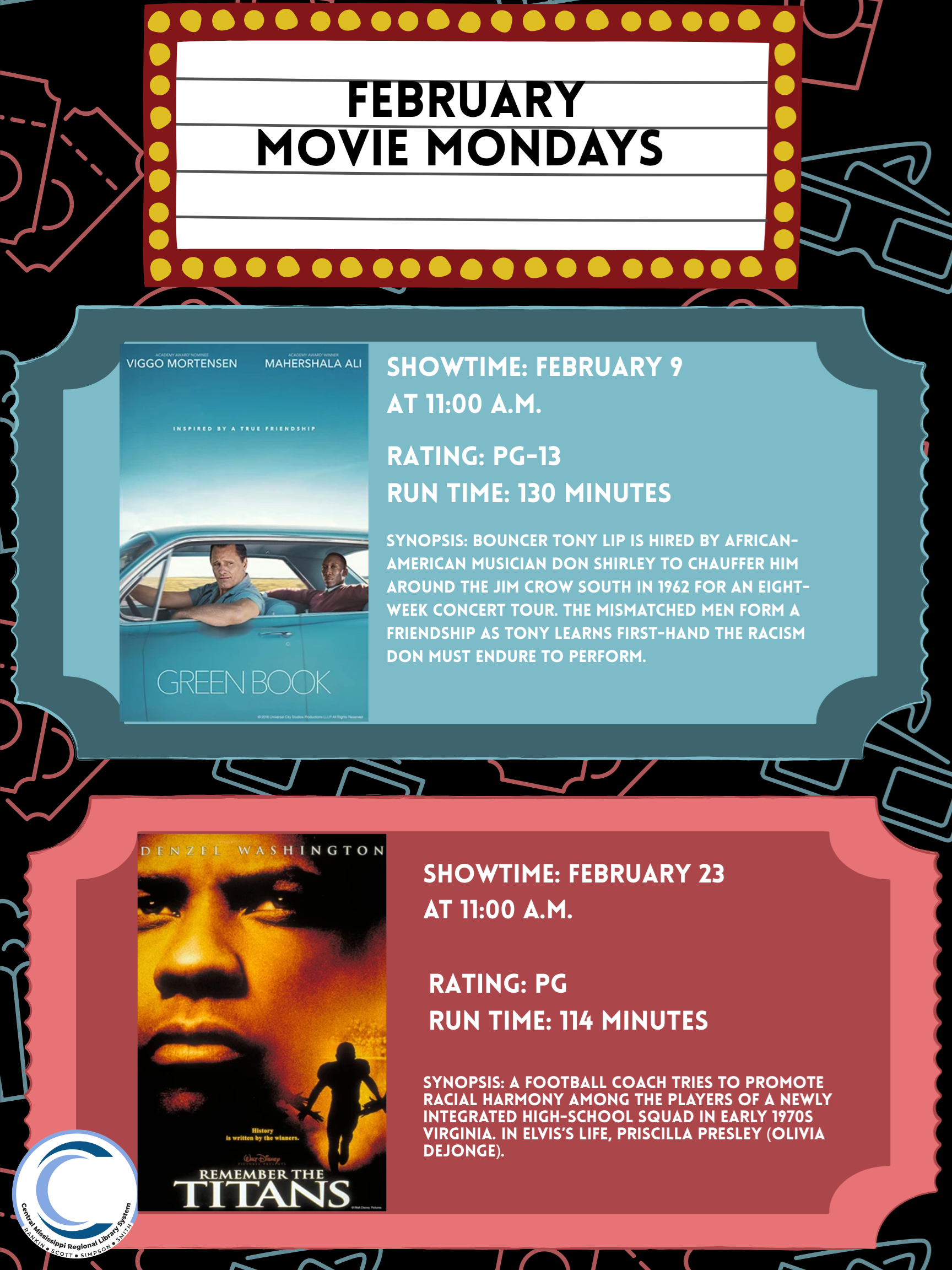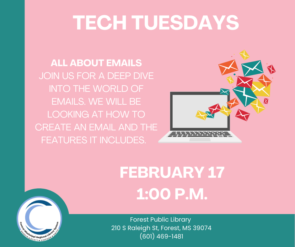 Retired Readers Book Club: The Senior Book Club is reading a book we love this month. That means that readers pick one they love and come talk about the reason they love it in our discussion on Tuesday, February 10, at 2:00 p.m.  Tech Tuesday: This Tech Tuesday is all about emails. We will be going over how to create an email, as well as how to use it and the features that you may have access to. This Tech Tuesday will be on February 17 at 1:00 p.m. Movie Mondays: For our Movie Mondays this month, we will be playing "Green Book" on February 9 at 11:00 a.m., and then on February 23 at 11:00 a.m., we will be showing "Remember the Titans."