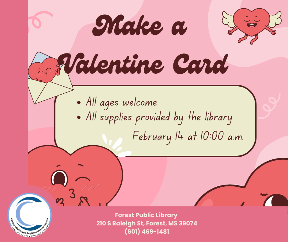 Preschool Story Time: Each Wednesday at 11:00 a.m., we have our Preschool Story Time. This program is a wonderful way to introduce your young child to others their age. We read stories, sing songs, and engage in activities that help promote your child's development. For February, we will be reading books that help to celebrate Library Lovers Month.  Homeschool Hour: This month, for our Homeschool Hour program, we will be visited by a lawyer who will be telling us all about their job and what it takes to become one. The meeting will be on February 20 at 10:00 a.m. Lego Club: Lego Club will be meeting on February 3 and 17 at 5:00 p.m. This program is open to all ages, as we have blocks of all sizes for builders to use. Family Fun Day: Show how much you love someone with a homemade Valentine's card. On February 14 at 10:00 a.m., we will have a program for the entire family to come create their very own Valentine Card. The library will provide all the supplies, you just have to bring yourselves!