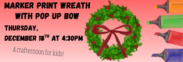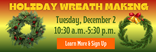 Tuesday, December 2 we will have a wreath-making program running most of the day. Please sign up in advance so we can prepare, and please bring some evergreen boughs and ribbons if you have access to them.