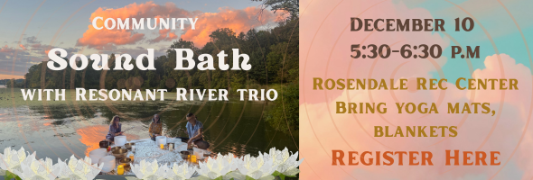 December 10 there will be a community sound bath we will offer at the Rec. Center. The holiday season can bring joy and also stress. The sound bath is designed to put you into a state of deep relaxation and calm. Sign up, and bring a yoga mat, blanket, and anything else that will make you comfortable lying down and taking a bit of time for self-care.