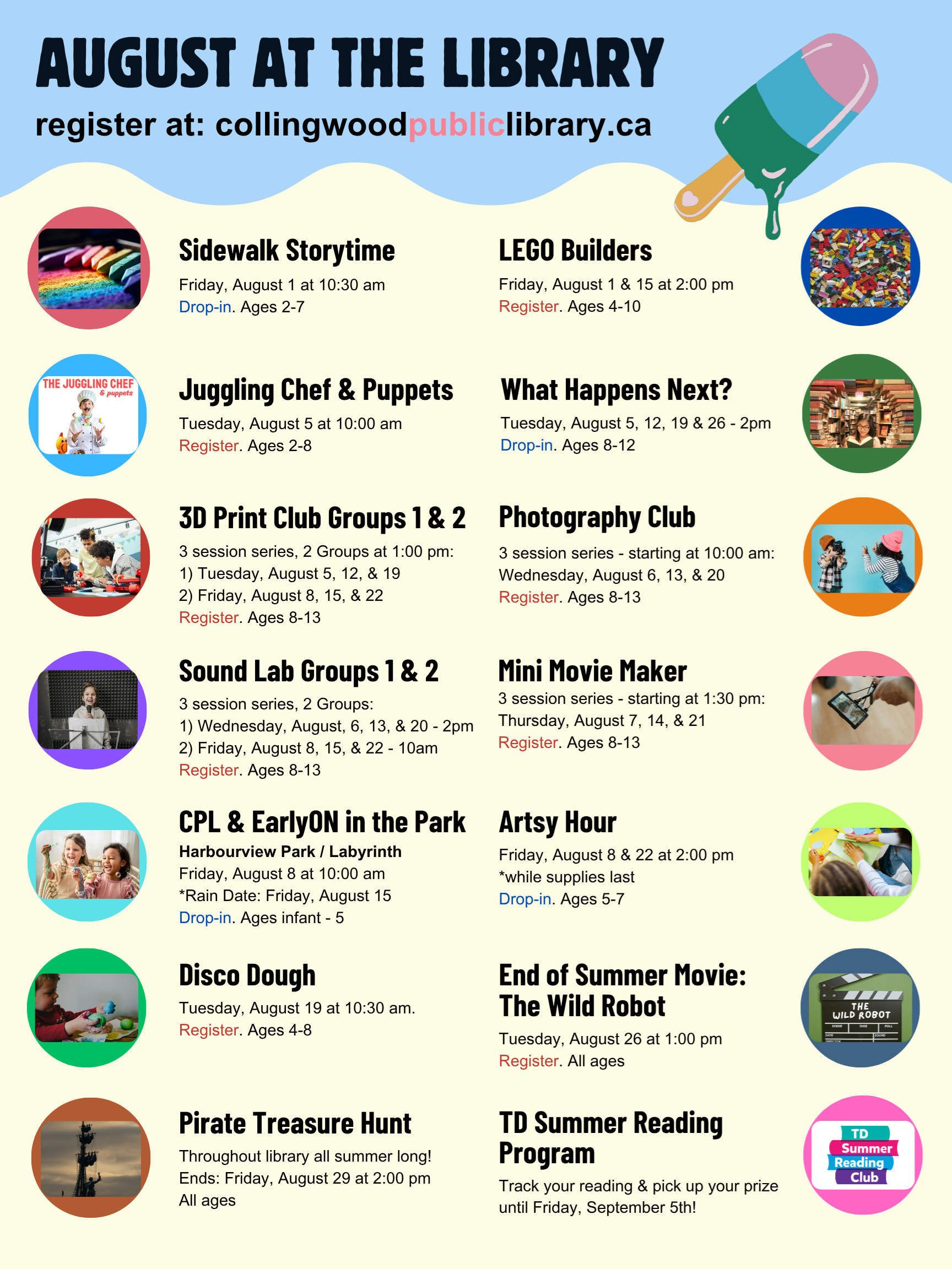 CLOSED Monday, August 4, 2025 The library will be closed on August 4 for the Civic Holiday. We are also closed on Sundays during the summer. Our digital library is available on our website 24/7 HERE.