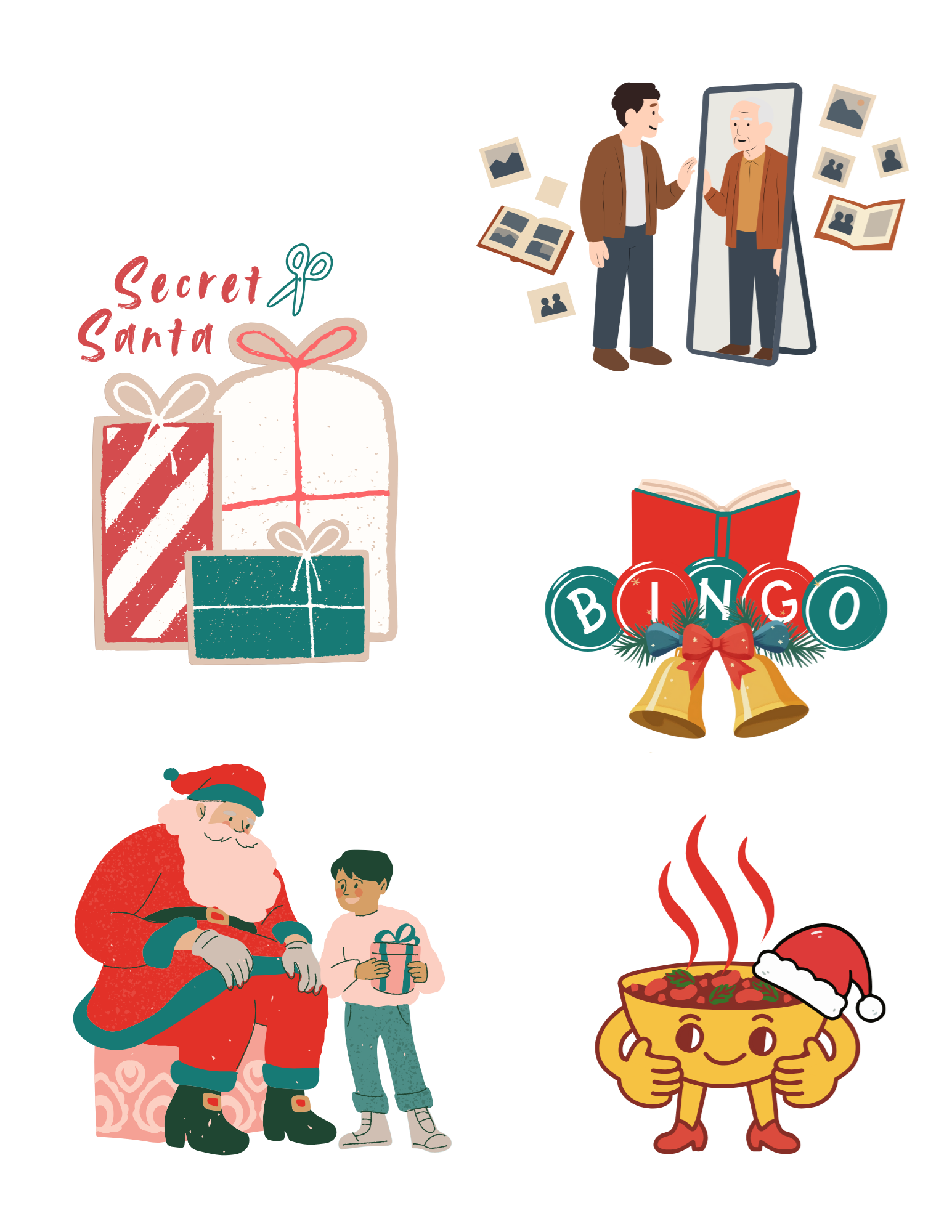 A Visit with Santa Saturday, December 13 at 10:30 a.m. in the Large Meeting Room Bring the whole family and celebrate the season with a magical visit from Santa Claus! Kids can share their holiday wishes, take photos with Santa, and enjoy a cozy, festive atmosphere filled with holiday cheer. Don't forget your camera! All ages are welcome! Registration is required for pictures. Santa's workshop will be open until 12 p.m. Bingo for Books Monday, December 15 at 6:00 p.m. in the Large Meeting Room Bingo for Books is back for another fun hour of bingo, snacks, and of course, books! Everyone will go home with a book, and if you're lucky, many more!
