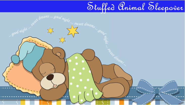 Wouldn't your stuffed animal love a sleepover at the library? Bring a stuffed animal to the library on Saturday, January 31. There are two sessions, one at 10:30 am and the other at 3:30 PM. Then return on Sunday, February 1 at 1:15 (for the first session) or 2:00 pm (for the second session) to pick up your stuffed animal and see what mischief it was up to overnight!