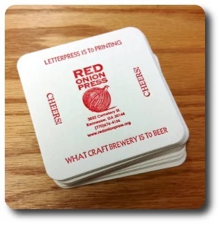 Adult Workshop: "Fundamentals of Letterpress" by Red Onion Pressages: 18 and up Two-hour Workshop: "Fundamentals of Letterpress" is a hands-on workshop where concepts and basic technique of letterpress printing will be explained and explored. Each participant will have the opportunity to create a block print and set type.