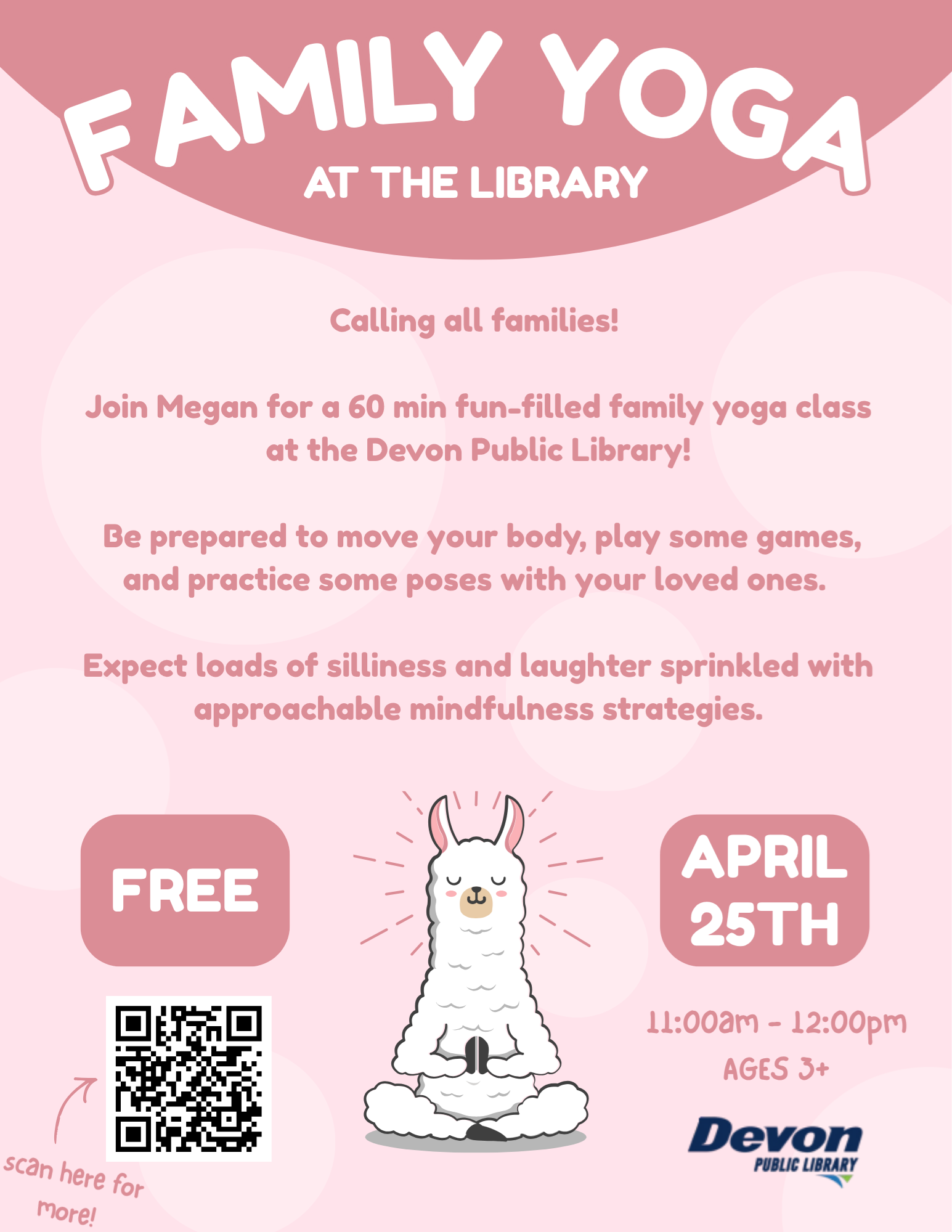 Family Yoga at the Library Saturday, April 25, 11am-12pm Calling all families! Join Megan for a 60 minute fun-filled family yoga class. Be prepared to move your body, play some games, and practice some poses with your loved ones. Expect loads of silliness and laughter sprinkled with approachable mindfulness strategies. Ages: 3+ Children under age 11 must be accompanied by an adult. Cost: Free. |