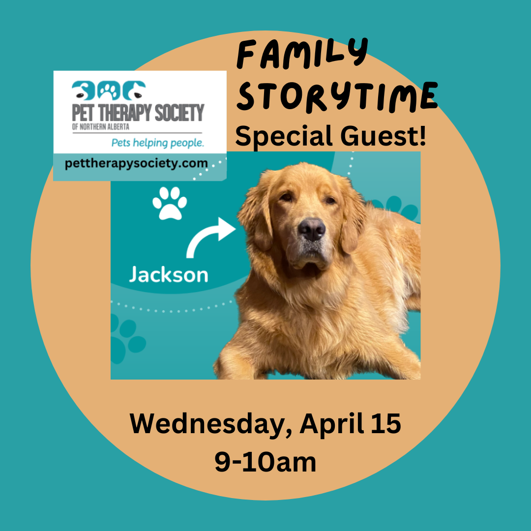 Family Story Time Special Guest! Pet Therapy Dog Jackson and his human, Susan Wednesday, April 15: 9:00-10:00am |