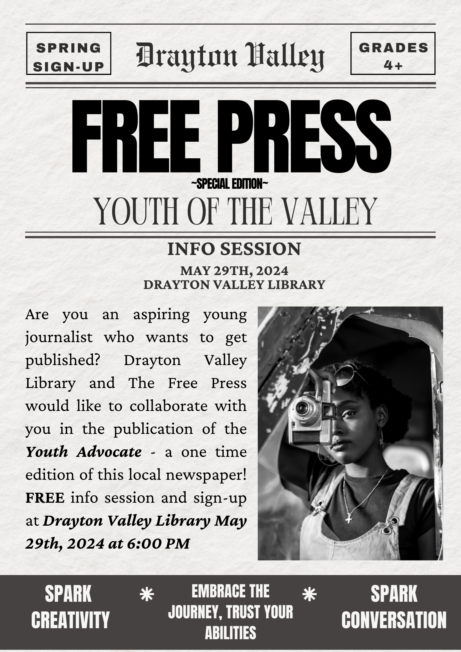 Photography Group DV Photography Group perfect for all shutterbugs from beginner to advanced skillsets! Share advice and inspiration while taking photos throughout the Town of Drayton Valley. Build your portfolio and social media platforms, as a hobbyist and/or professional photographer! Bring your camera of choice and explore the diverse world of photography!