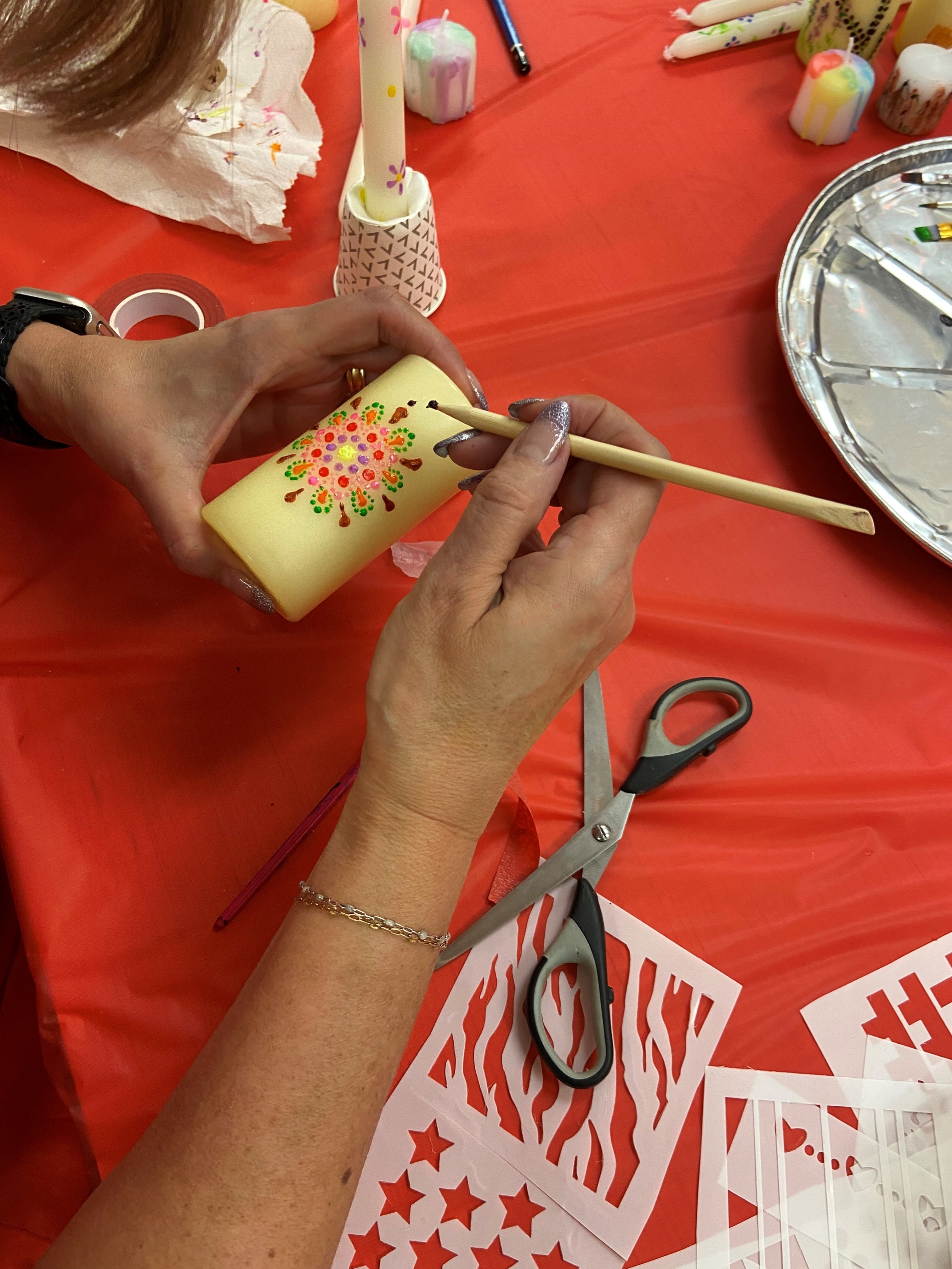 Adult Craft Night Participants crafted creative designs using candle wax!