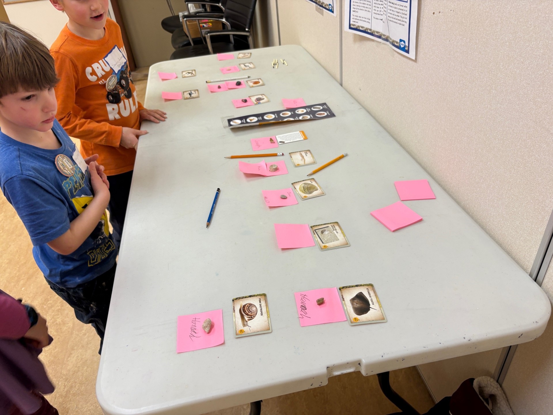 STEAM Club These future paleontologists found fossils hidden around the library, then excavated and identified their artifacts!