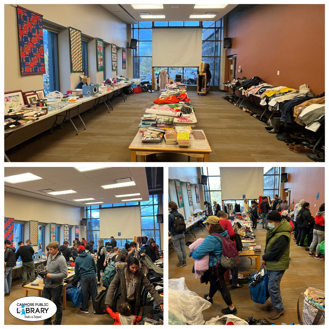 CPL at the Banff Early Years Fair Hello, my friends, hello! Miss Rhonda and Miss Carey represented the Canmore Library at the Banff Early Years fair on Saturday, October 19th. They loved the chance to connect with Bow Valley families, and provided information on all our programs, services, and resources available for families with kids up to age six! Thank you to everyone who stopped by to say hi! October Full Moon Swap Another successful Full Moon Swap is in the books! Hundreds of community members came out to participate in our October swap; whether it be to donate, shop, or swap items. These monthly swaps beautifully showcase our community's spirit of coming together, supporting one another, and caring for the planet all at once.