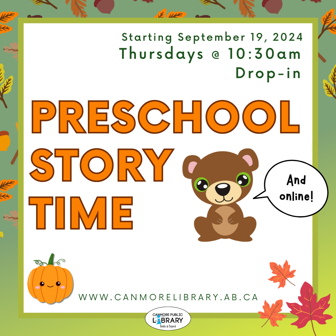 Thursdays September 19th - November 28th 10:30 - 11:00am (Please note the day change. Preschool Storytime will run on Thursday mornings for the fall.) A mix of picture books, silly rhymes, and action-songs, this storytime is perfect for preschoolers aged 3-5 who are ready for longer stories. The program is designed to help build their attention span and foster a continual love of stories. Preschool Storytime will be a hybrid program. You can still join through Zoom, at the same day and time, for any who wish to join remotely. The link to join remotely can be found on our website.