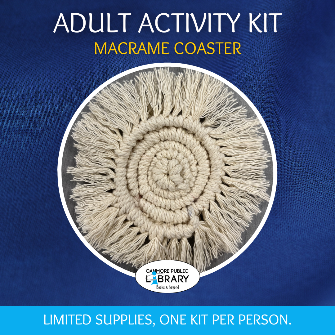 Macramé is a fiber craft that requires no extra tools like knitting needles or crochet hooks - just your hands! Macramé consists of many interlocking knots, that were first seen in Ancient Babylonian textiles that included an elaborate fringe. Macramé became exceedingly popular in the Victorian era, as decorations and embellishments suited for "home wear, garden parties, seaside ramblings, and balls". Popularity for the weaving style declined before a resurgence in the 1970s, and again today on Tiktok and Instagram. Throughout history macramé has been a popular pastime and essential weaving skill used to create anything you can imagine - and today you can make your very own macramé coaster! With this kit from the Canmore Public Library, we've provided the cord and instructions needed to create a coaster. For adults, one kit per person. If multiple people from your household would like a kit, please register each person separately.