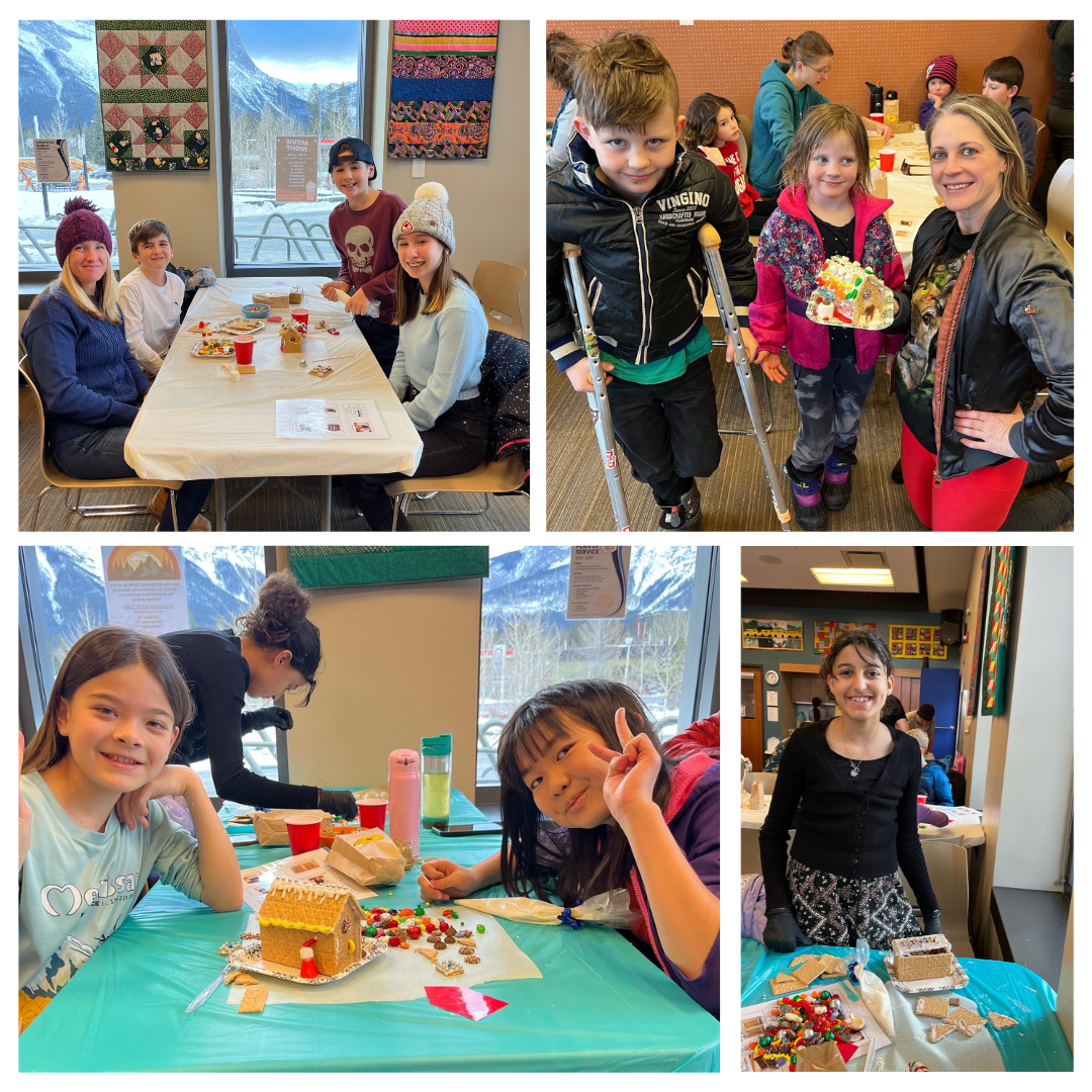 Family Holiday Storytime Wow, what a turn out! Our Family Holiday Storytime boasted more than 75 attendees! Thank you to everyone who came out to sing carols, read stories, and ring jingle bells with us. We had so much fun celebrating the season with you! The Rocky Mountain Outlook joined in on the family, festive fun! To view their photos, click here. Gingerbread Houses Gingerbread Houses was a blast! We loved seeing all of your colorful and festive creations. Thank you to everyone who came out and made a gingerbread house with us - we hope you had as much fun as we did! We'd like to send our thanks to Olde Tyme Candy Shoppe for their generosity in donating the candy, and Save-On Foods in Canmore for their support in donating the icing. These local businesses help make this program possible! The Rocky Mountain Outlook joined us at Gingerbread Houses this year! To view their photos, click here. Stoney Christmas Market On December 16th the Canmore Library was honoured to be a part of the Stoney Christmas Market again this year. We attended with Rose Reid, Indigenous Outreach Consultant for Marigold Library Services, and handed out over 250 books! Thank you to everyone who stopped by our booth, we loved getting to chat and connect with you!