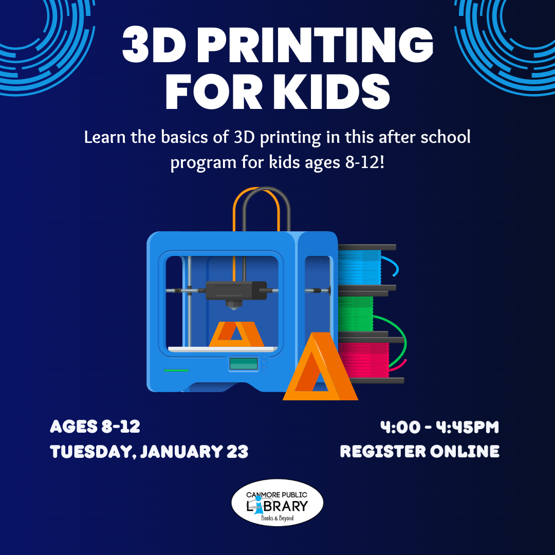 The new year is here, and we are so excited for what it has to bring! We are kicking off 2024 with a few exciting announcements, a brand-new children's program all about our 3D printer, the launch of an inspiring new series of author panels, and a new time for Tech Tips and Tutoring! This month will bring an Earth Talk event that covers wildlife corridors in the Bow Valley, a Friends Speaker Series' presentation about one family's search for their father's lost gold, and a Full Moon Swap of winter items for people and their pets. Keep reading below to learn about everything your library has to offer this January and beyond!