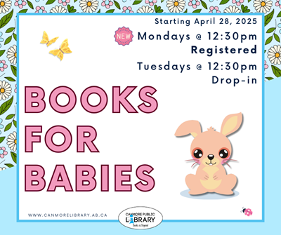 Our Spring Storytime Session runs until June 4th. We are excited to announce that we have added a registered version of our popular Books for Babies program on Monday afternoons! This session is capped at 15 participants, making it perfect for those looking for a smaller, more intimate group setting. All other storytimes remain drop-in. Storytimes are held in the Friends Program Room. While we plan each storytime with a specific age range in mind, everyone is welcome at all storytimes!