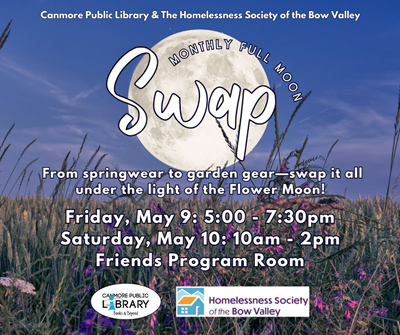 Welcome the season of renewal at our Flower Moon Swap—a fun, free community event where you can trade gently used items, connect with others, and refresh your space sustainably! In the spirit of spring’s blooming energy, bring your gently used items like spring clothing, gardening tools, plants, seeds, books, décor, and more—and take home something new to enjoy! Swap hours: Friday, May 9 | 5:00–7:30 PM Saturday, May 10 | 10:00 AM–2:00 PM Where: Friends Program Room – Canmore Public Library