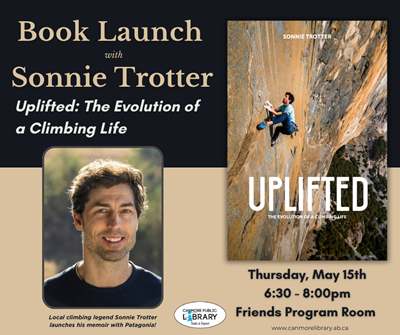 Join local climbing icon Sonnie Trotter at the Canmore Public Library for the launch of his memoir Uplifted: The Evolution of a Climbing Life, published by Patagonia Books.