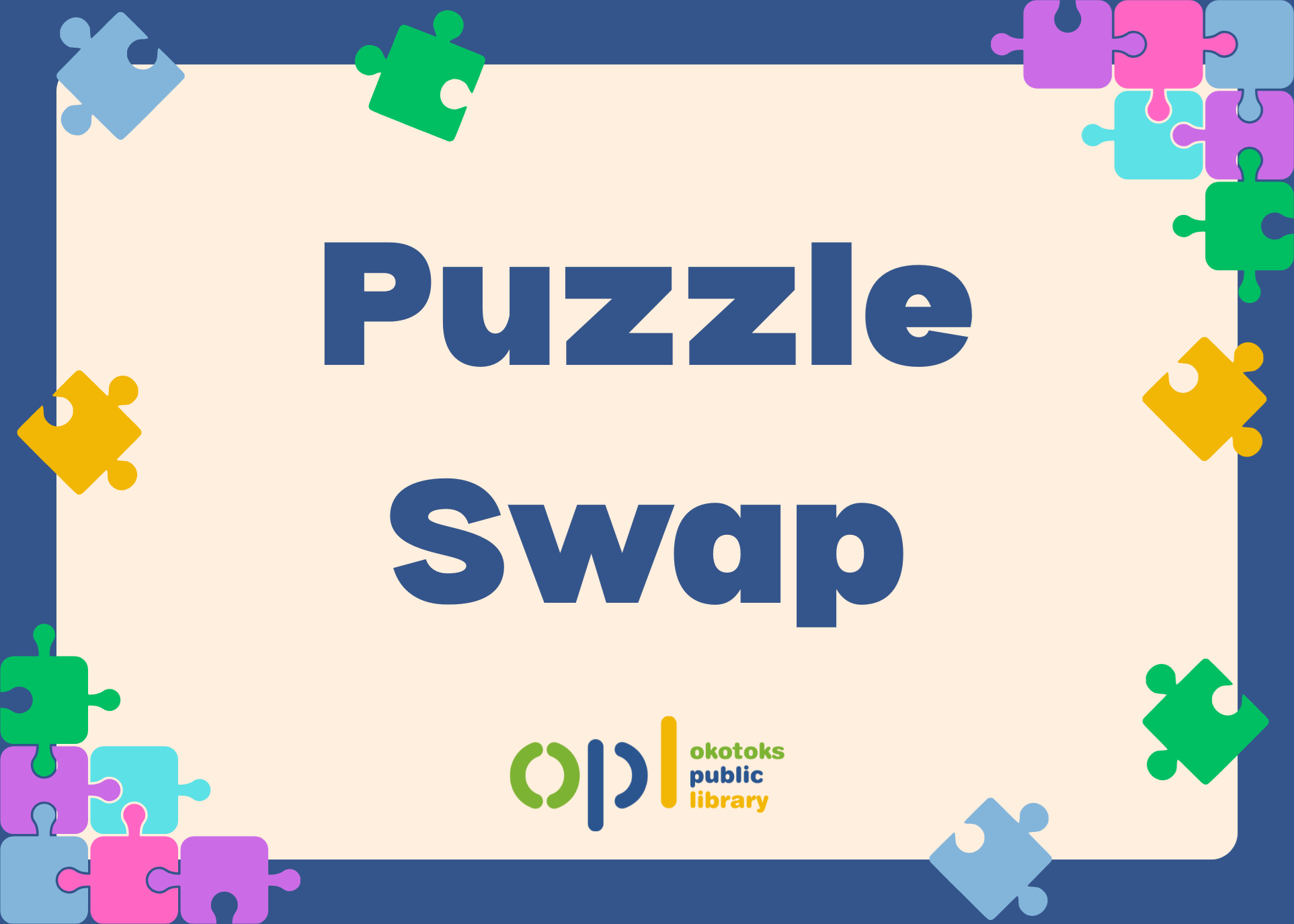 Bring your gently used and well cared for puzzles and exchange them for a same piece count puzzle. Kids puzzles in excellent condition are welcome. |
