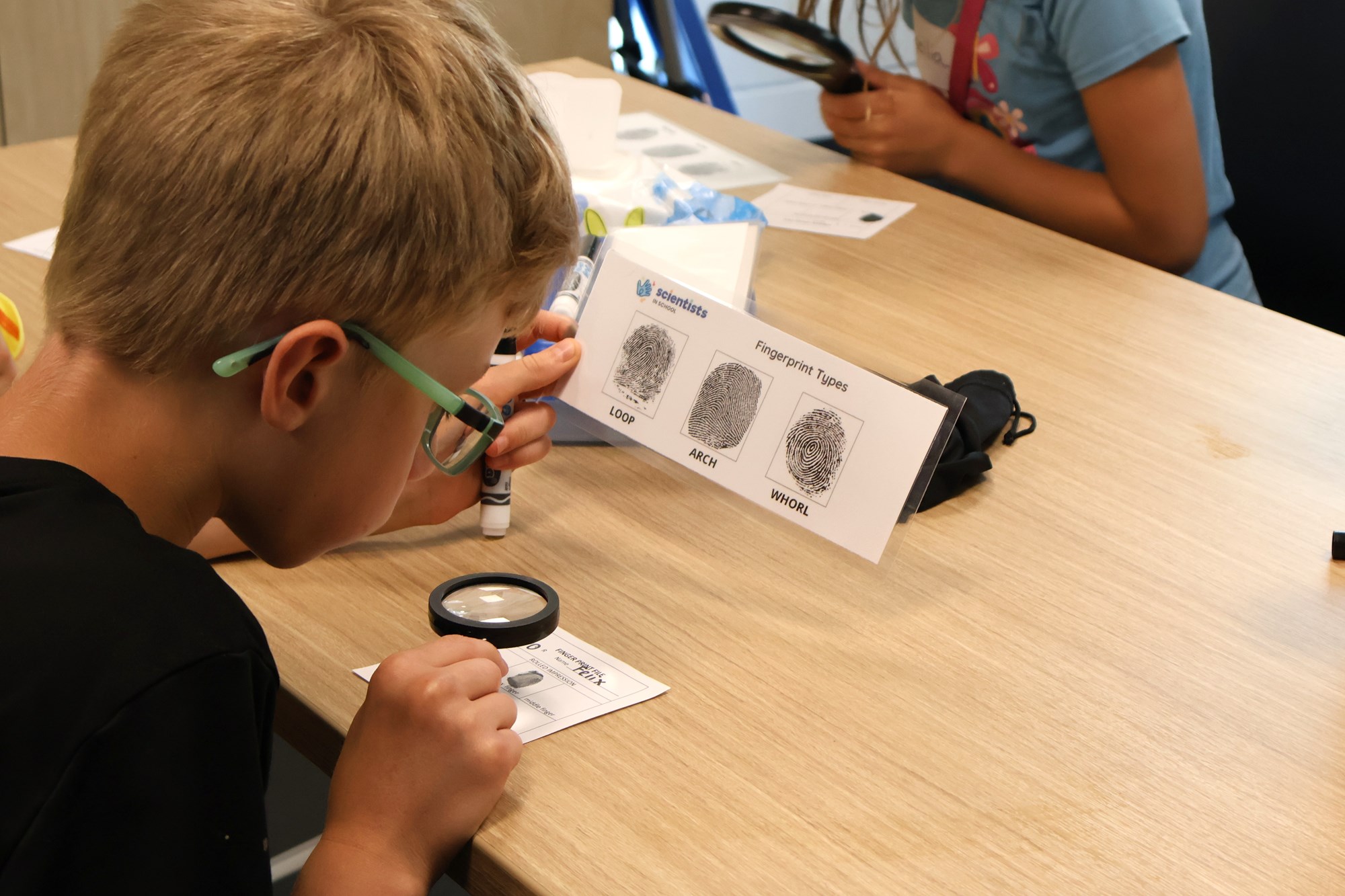 Future detectives at work! Our young scientists learned how to take and examine their own fingerprints, at Investigate It!