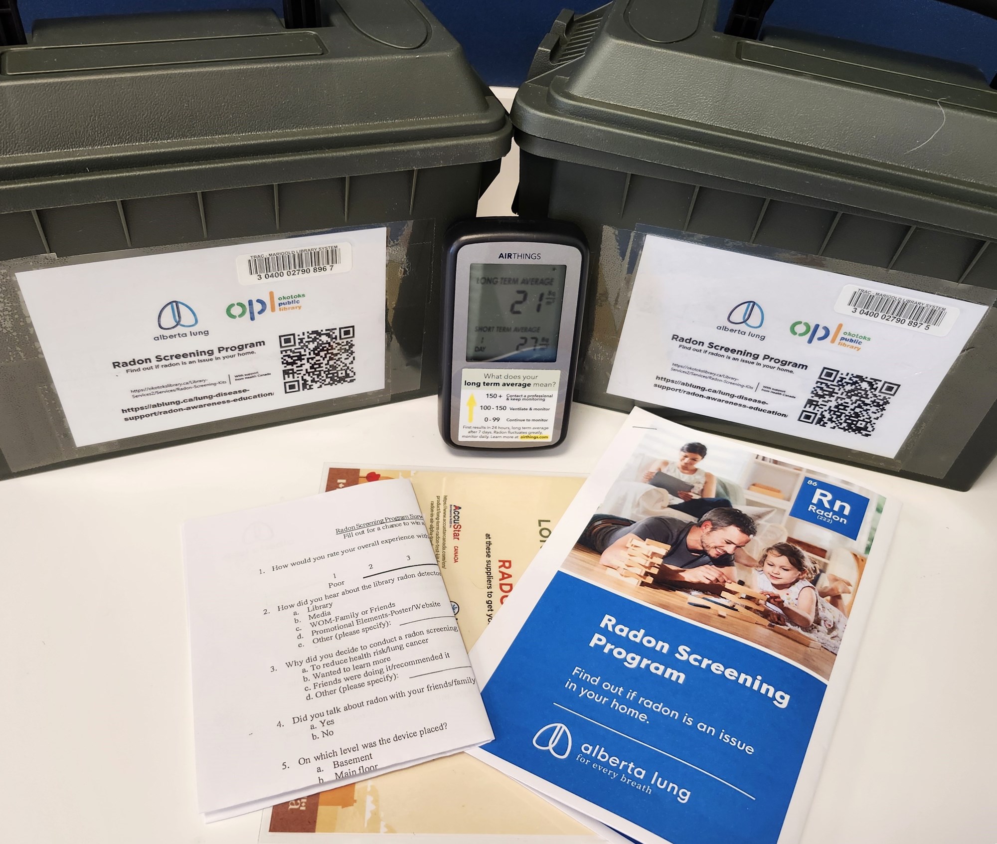 Test your home for radon, an invisible, odourless, and tasteless radioactive gas. Thanks to the Alberta Lung Association and Health Canada for making these kits possible. These kits are available from October - April.  |