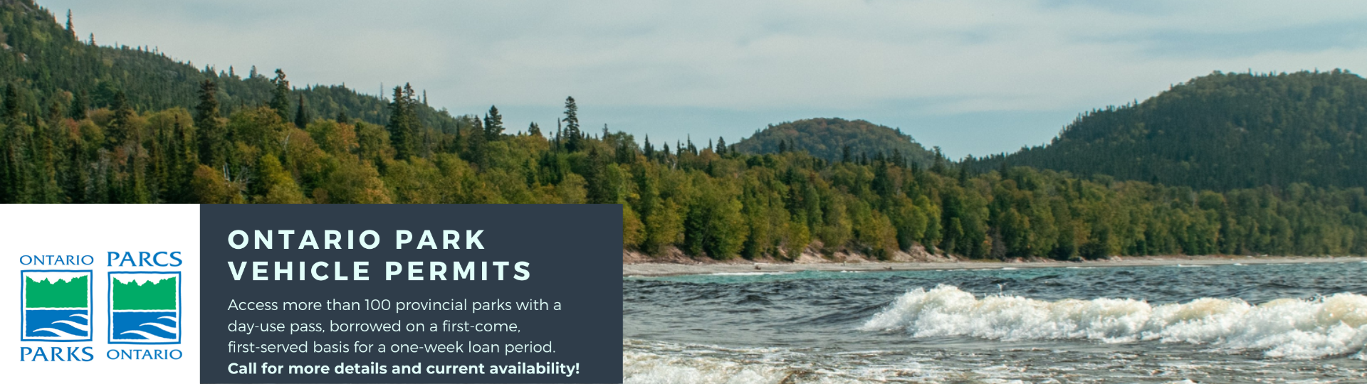 Ontario Parks Vehicle Permit Get Outdoors Access more than 100 provincial Parks with a day-use pass, borrow on a first-come, first-serve basis for a one week loan period.