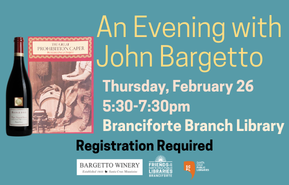 Join us for a special evening with author John Bargetto featuring a reading and conversation, followed by a curated wine tasting. He will discuss his book, The Great Prohibition Caper: Bootlegging in Soquel, sharing stories that blend local history, family legacy, and cultural heritage.