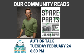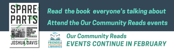 Our Community Reads continues in February! Be sure to check out a copy of Spare Parts, by author Joshua Davis, so you can join all the upcoming Our Community Reads events. Visit the link to learn more about all the events for this year's Our Community Reads and register to attend.
