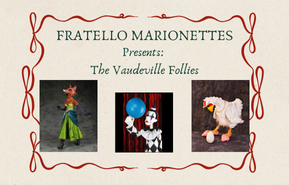 “The Vaudeville Follies” is a marionette variety show presented in the spirit of the old-time music hall. An opera singer, a trapeze artist, Pierrot and his balloon, a trained dog, and a ballet dancing chicken are just a few of the acts you might see.